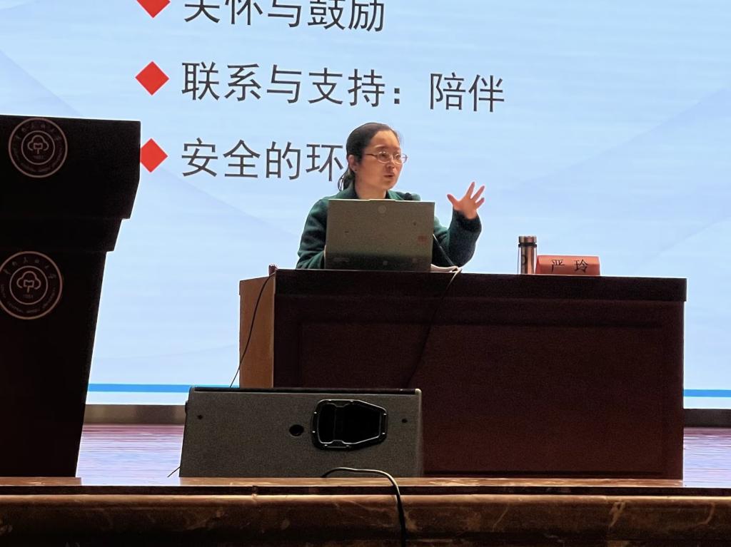 嚴玲老師以《生命教育》為題,圍繞大學生常見的“為什么”、“我是誰”、“自己有何價值”、“人生的意義是什么”四個問題,從學業、生活、情感等方面娓娓道來,全方位、多角度與同學們暢談生命的意義,分享心理學知識。
