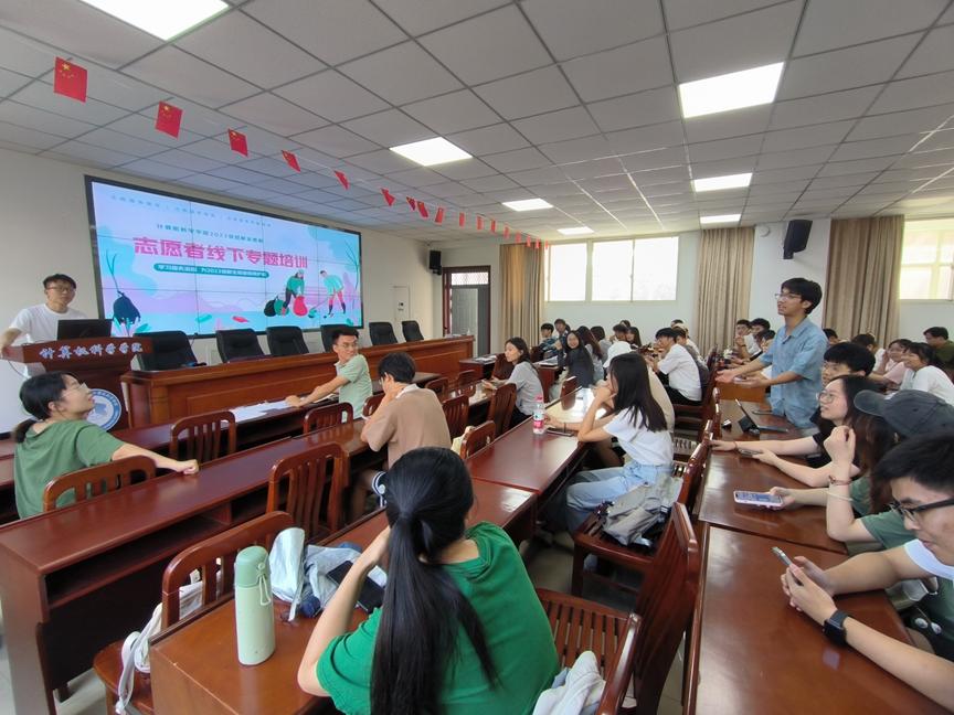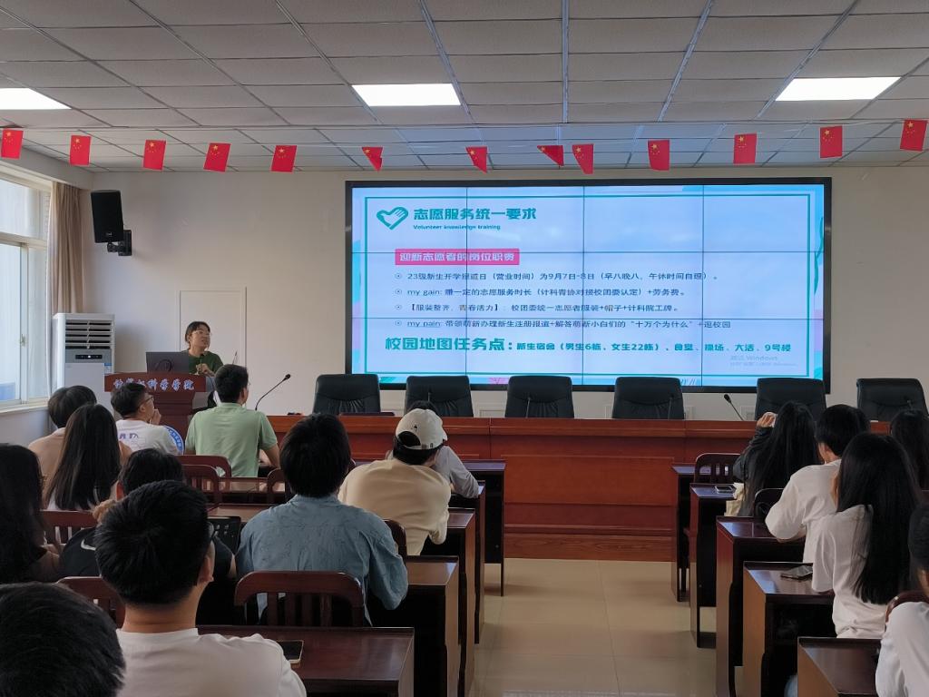為切實做好本院新生迎新工作,進一步落實入學流程,保障新生有序順利報到, 9月6日中午,計算機科學學院在9號樓211會議室組織院級迎新志愿者培訓會,2022級輔導員祝夢歡、2023級輔導員蘇志俊、沈易軍和新生班助、迎新志愿者參加會議。