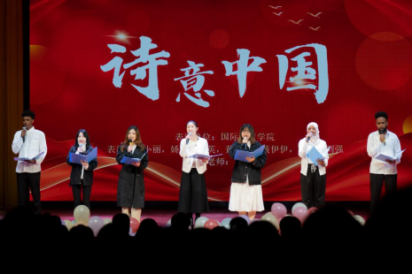 在20級優(yōu)秀學生的祝福視頻中,在計科紅人NAO、機器狗、輕舟機器人和智元素格斗機器人的歡迎吶喊聲中,晚會拉開序幕。《月光下的中國》描繪出月光下大美的中國,傳遞著熾熱的愛國之聲;剛柔并濟的跆舞《品韻》、體育學院帶來的武術表演,展現(xiàn)了流傳千年的華夏“武”學之美,舞出了中國傳統(tǒng)文化的獨特魅力;國際教育學院朗誦的《詩意中國》展現(xiàn)了外國友人對中國文化的熱愛;小品《消失的周日》警醒著同學們要“珍惜當下,拒絕拖延”。南湖湖水清明,倒映塔影秋光,《同舟之情》、《七里香》、《奢香夫人》、《特別》……,在展現(xiàn)大學生獨特的青春氣息的同時,用青年學子特有的方式有形有感有效地鑄牢中華民族共同體意識。