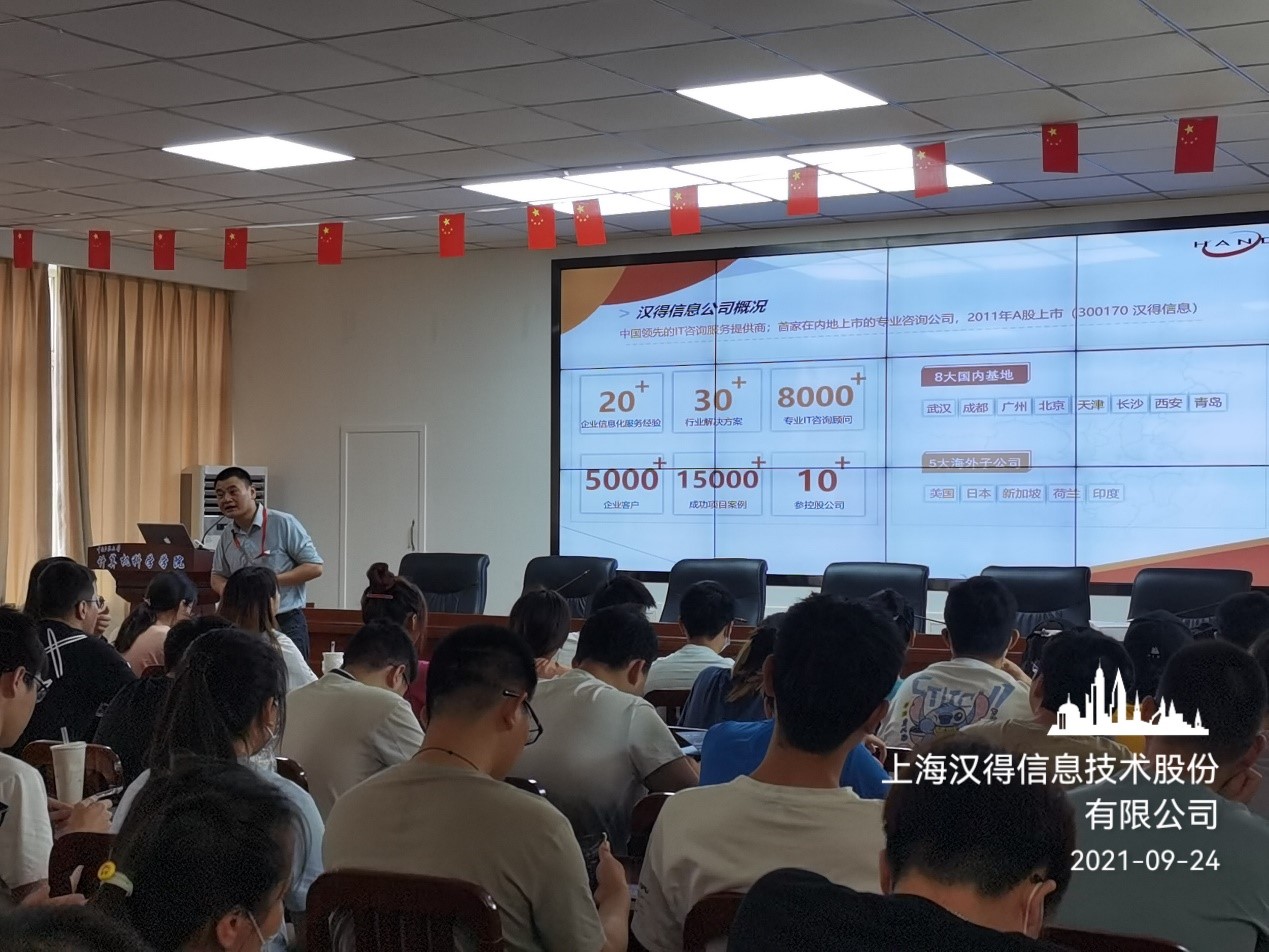 為了幫助計算機科學學院2022屆畢業生更好地了解招聘信息,找到自己心儀的企業。9月24日,計算機科學學院在9號教學樓211教室舉辦上海漢得信息技術股份有限公司專場招聘會。