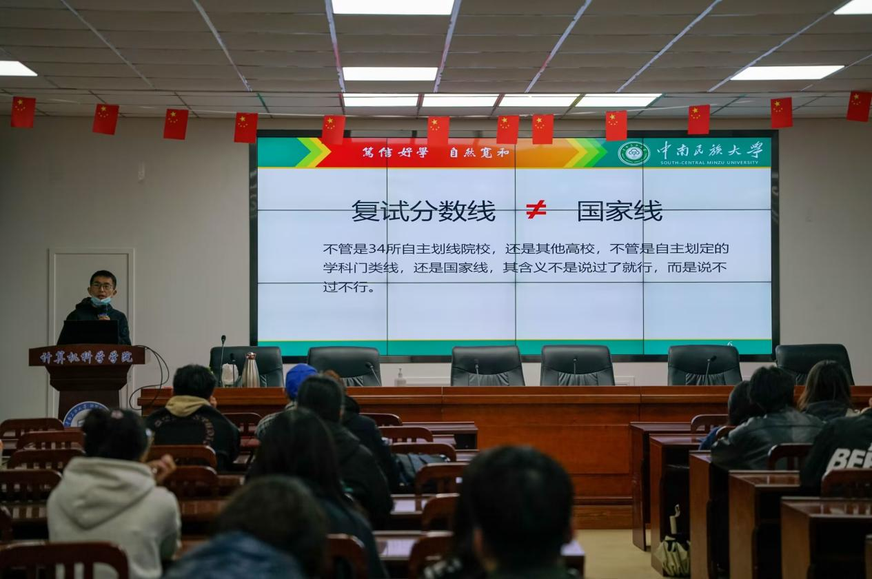 余老師主要從復試方面講解研究生招生政策,分別介紹了國家線、復試差額、復試注意事項以及調(diào)劑。針對調(diào)劑,余老師強調(diào),要廣泛搜集調(diào)劑信息,并且提前了解該校的相關政策、招生傾向。除此之外,余老師還表示今年一定要把握住機會,盡量能“上岸”就上。伴隨同學們的提問,會議來到尾聲,余老師祝愿今年備戰(zhàn)考研復試的同學都能取得好成績。至此,計算機科學學院研究生招生政策宣講會圓滿結束。