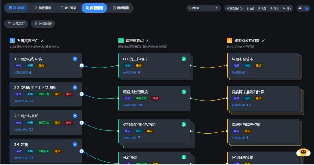 問(wèn)題圖譜:結(jié)合考研真題與課程重難點(diǎn),構(gòu)建“考研-課程-應(yīng)用”三維問(wèn)題體系,助力學(xué)生高效備考。