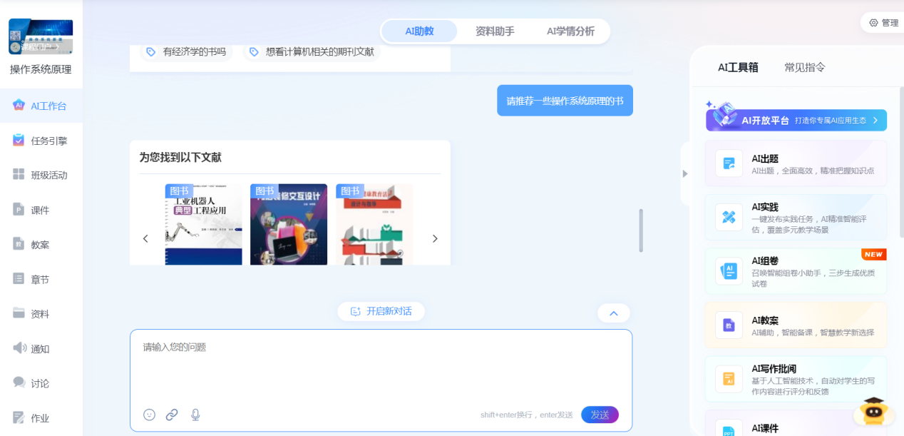 AI助教:實(shí)時(shí)問(wèn)答與資源推送:搭載深度思考模型,實(shí)現(xiàn)實(shí)時(shí)問(wèn)答與資源推送,為學(xué)生提供個(gè)性化輔導(dǎo),深化知識(shí)理解。