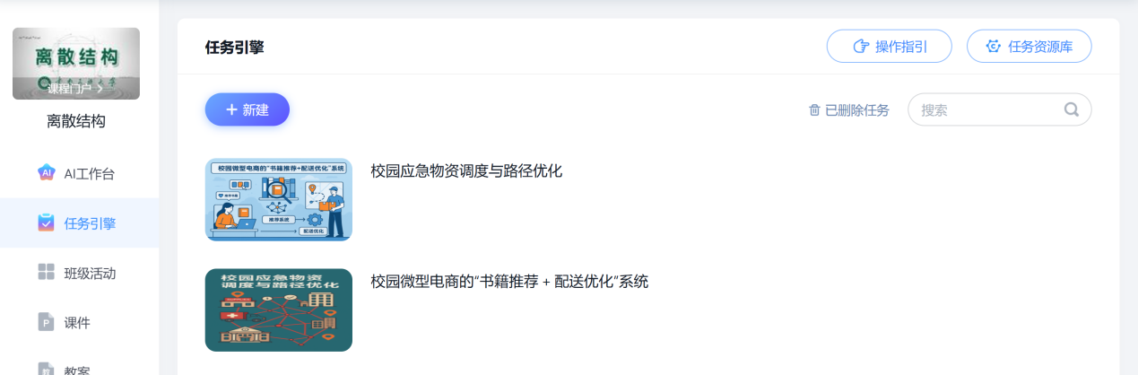 跨領(lǐng)域?qū)崙?zhàn)任務(wù):引導(dǎo)學(xué)生基于集合論、關(guān)系模型等教學(xué)內(nèi)容,快速搭建數(shù)學(xué)模型和原型系統(tǒng);利用最短路徑、生成樹、網(wǎng)絡(luò)流等經(jīng)典算法,讓學(xué)生在物流優(yōu)化、資源調(diào)度等實(shí)際案例中,運(yùn)用離散結(jié)構(gòu)方法解決復(fù)雜問(wèn)題。
