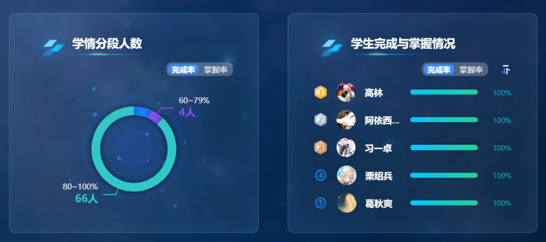 學(xué)情動(dòng)態(tài)評(píng)估:基于課堂互動(dòng)、作業(yè)完成等數(shù)據(jù),生成“知識(shí)掌握率”分析報(bào)告,讓學(xué)習(xí)效果一目了然。