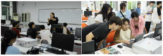上午9時,9-308教室的計算機系統結構實驗室準時“迎客”。田莎莎、田微兩位老師化身 “科研引路人”,從計算機系統的底層架構講起,將復雜的知識融入生動的案例與成果展示中。隨著老師講解,師生們透過代碼與模型,看到計算機系統從“黑箱”到“透明” 的技術演進,感受底層技術創新對上層應用的支撐力量,不少同學當場表示“對計算機系統的理解又深了一層”。