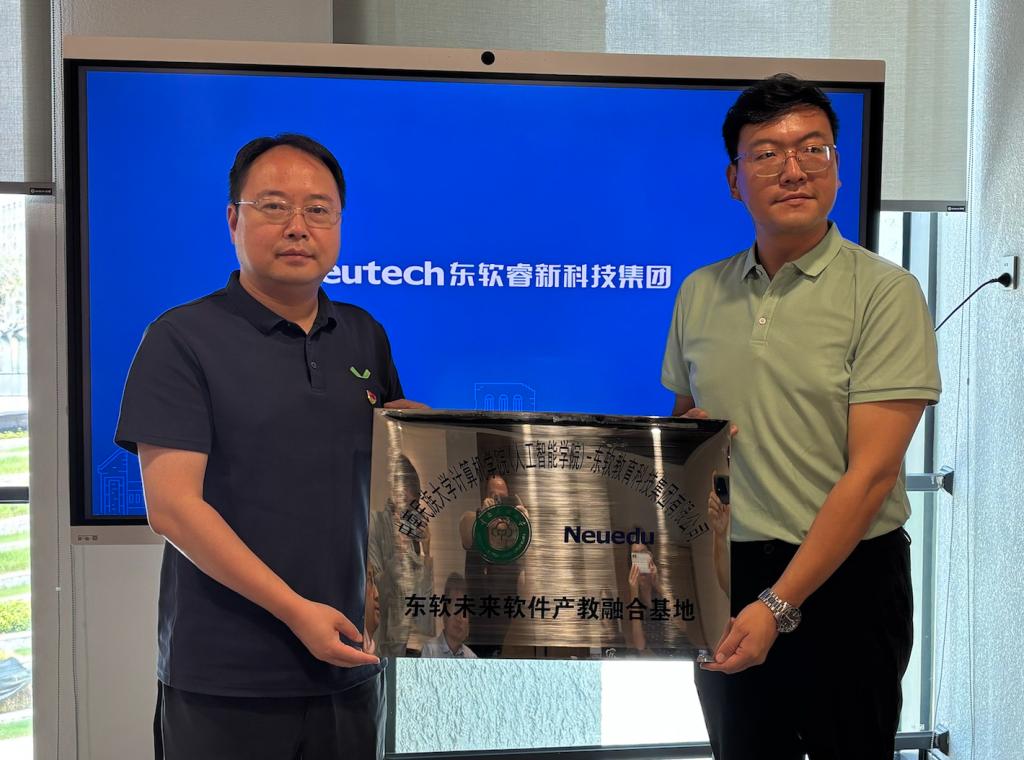 最后,在與會嘉賓共同見證下,帖軍院長與任志龍總經理代表雙方為“東軟未來軟件產教融合基地”正式授牌并合影留念。此次授牌是雙方合作的新里程碑,為培養適應數字經濟與人工智能時代的高素質軟件人才奠定了堅實基礎。