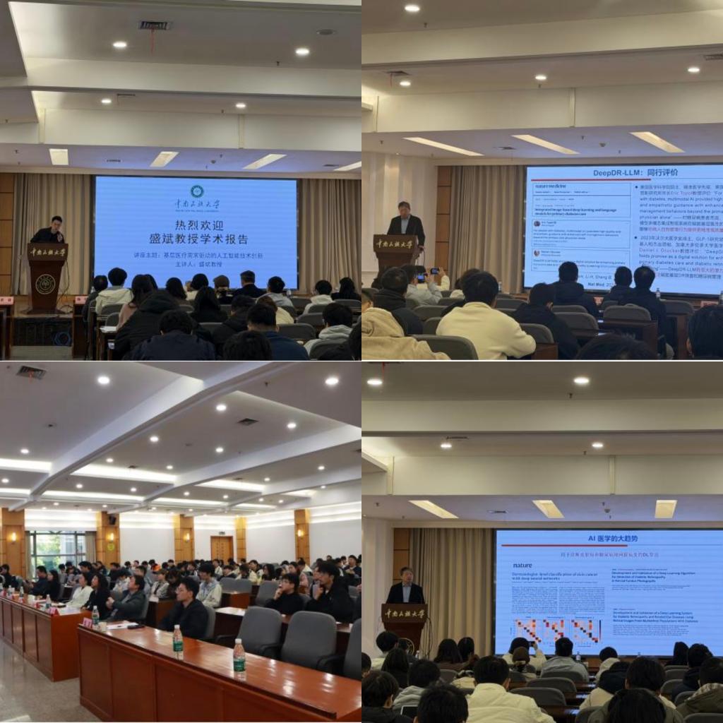 盛斌教授獲國(guó)家自然基金委青年科學(xué)基金項(xiàng)目(A類)、國(guó)家萬(wàn)人計(jì)劃青年拔尖人才等項(xiàng)目資助,近五年來(lái)以(共同)第一 / 通訊作者身份在 JAMA、Nature Medicine 等頂級(jí)期刊發(fā)表論文 69 篇,獲上海市科技進(jìn)步特等獎(jiǎng)、世界人工智能大會(huì) SAIL AWARD 等多項(xiàng)重要榮譽(yù)。此次講座為師生搭建了高水平學(xué)術(shù)交流平臺(tái),不僅展現(xiàn)了人工智能與基層醫(yī)療融合的前沿動(dòng)態(tài),也為相關(guān)領(lǐng)域的教學(xué)科研和創(chuàng)新實(shí)踐提供了新思路。
