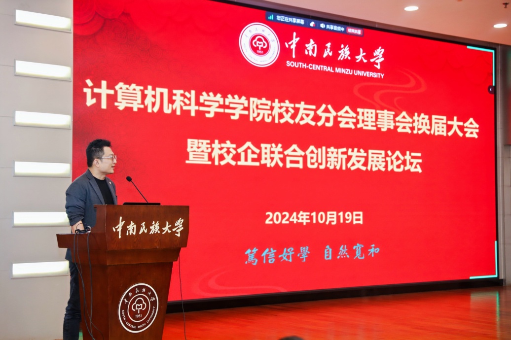 換屆大會上,宋發軍代表學校對廣大校友重返母校表示熱烈歡迎。他表示,校友不僅是學校的寶貴財富,更是推動學校持續發展的重要力量。他希望廣大校友能夠繼續關心和支持母校的建設與發展,為學校貢獻更多的智慧和力量,共同書寫中南民族大學的新篇章。