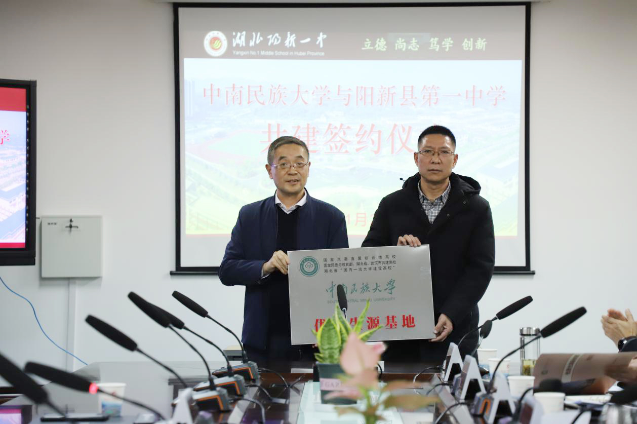1月22日下午,劉義一行來到湖北省陽新縣第一中學調研。劉義與陽新縣委常委、副縣長柯光榮,陽新縣教育局局長李細祿,陽新一中黨委書記方長風等有關同志圍繞建設“五個一中”、深化校校合作等內容交換意見,并簽訂戰略合作協議,雙方為建立優質生源基地掛牌。劉義指出,中南民大作為國家民委直屬高校,綜合實力較強,始終堅持以鑄牢中華民族共同體意識為主線做好各方面的工作,可以為陽新一中在師資培訓、科技強校、文化建設和民族團結教育等方面發揮重要作用。座談會結束后,有關同志向陽新一中高三學生介紹了我校的辦學規模、學科專業和招生政策等情況,歡迎學生踴躍報考。