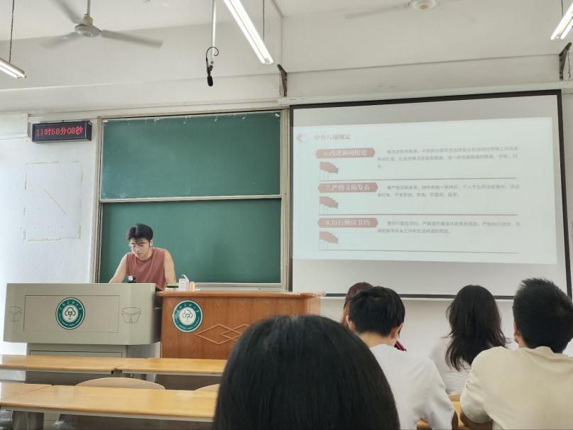 隨后,全體同學重溫中共中央八項規定內容,深入學習改進調查研究、精簡會議活動、厲行勤儉節約等八項具體要求,并圍繞“堅決抵制四大不正風氣”展開專題學習。大家深刻認識到,形式主義、官僚主義、享樂主義和奢靡之風是作風建設的重點整治對象,中央八項規定是糾治“四風”的重要抓手,作為青年學生黨員必須時刻繃緊紀律之弦,在日常的學習和生活中以身作則,以服務師生的實際行動踐行作風建設要求。