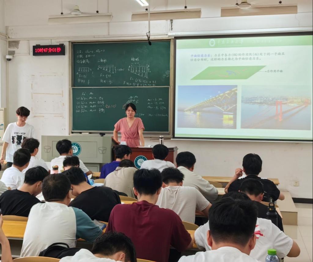 此次課程思政示范課程為學院劉靜老師面向2023級機械設計制造及其自動化專業01班和02班學生講授的《理論力學》,計算機科學學院專任教師李明等教師到場觀摩交流。