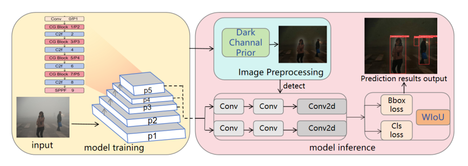 孫夢同學的論文題目為《Pedestrian Detection in Foggy Weather Through YOLOv8 based on FEAttention》。她的研究工作主要關注在霧霾天氣下難以準確識別、定位到行人,甚至會出現漏檢、錯檢等問題,提出了一種基于 YOLOv8算法的改進模型 CDW-YOLOv8,該模型的結構框圖如圖3所示。為了提高模型檢測的準確度和為相關研究提供更多優質數據集,自制了一個公開的中等規模霧天行人檢測專用的Foggy Pedestrian 數據集,包含多種復雜霧天情況下的行人圖像,如圖4所示。