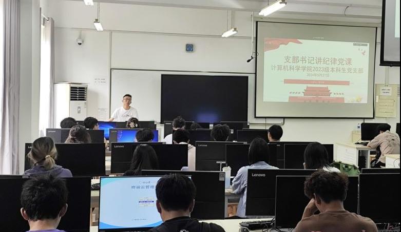 為全面落實計算機科學學院黨委“鑄魂育人、數智強國”黨建工作品牌建設的工作要求,5月27日中午,計算機科學學院2023級本科生黨支部在9-205教室舉行了5月份的主題黨日活動。此次活動以“扎實推進黨紀學習教育 正風肅紀凝聚奮進力量”為主題,旨在加強支部的紀律教育,促進黨員之間的交流與學習。2023級全體發展對象和入黨積極分子參與本次活動。