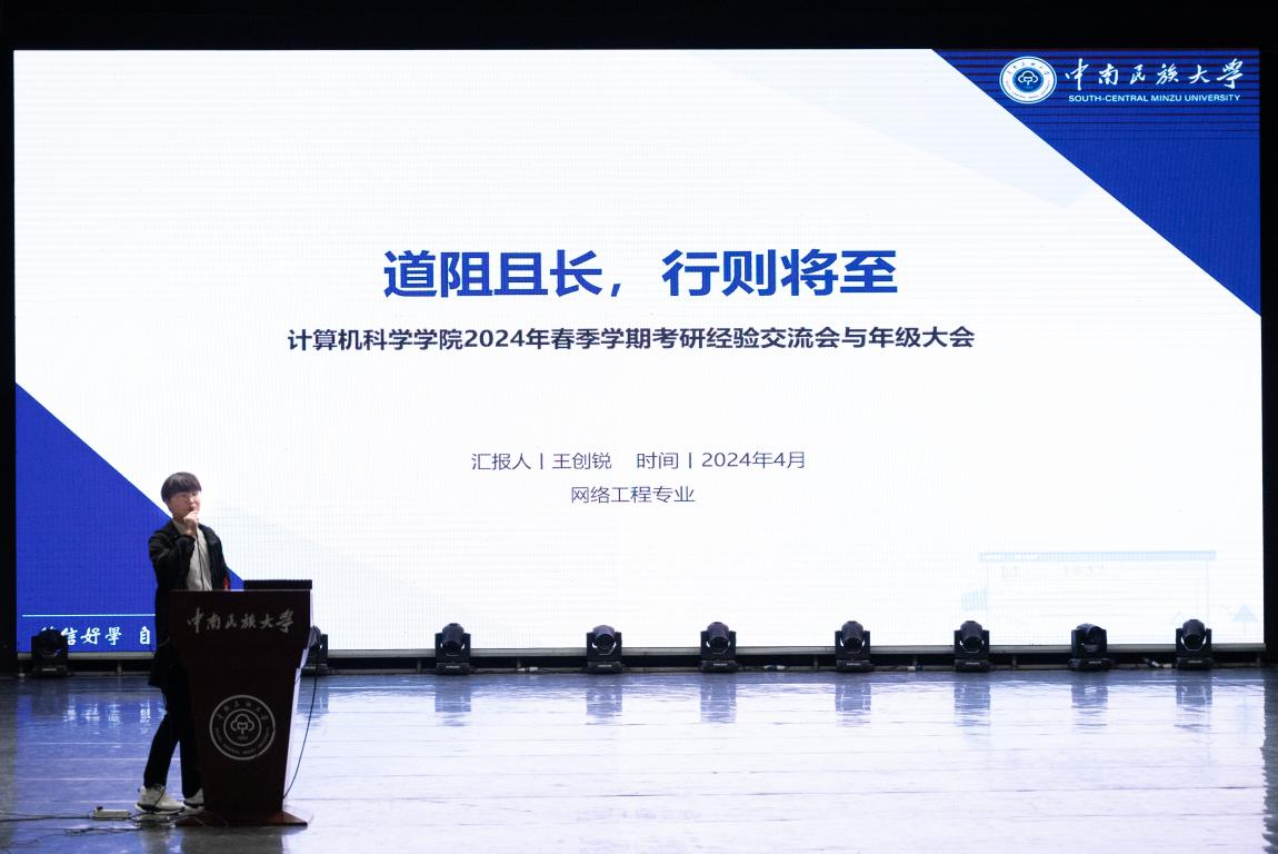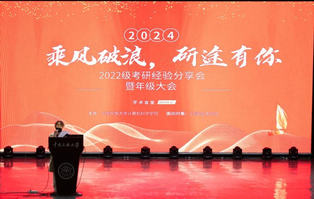 為營造學院優良學風,提前做好學生考研準備,4月12日,計算機科學學院在學校大禮堂舉辦2022級本科生考研經驗分享會。參加本次分享會的有2020級保研、考研成功的6名學生代表,2022級全體本科生和輔導員祝夢歡、劉浩然。