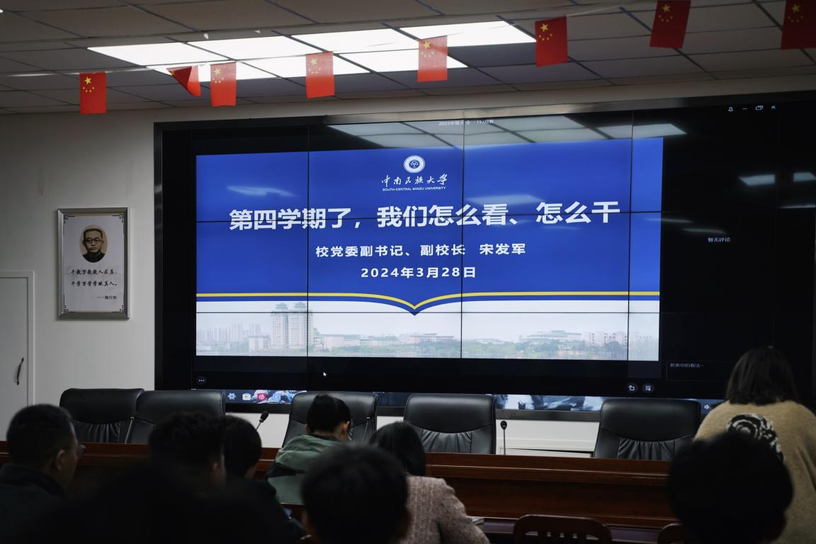 為幫助學(xué)生樹立遠(yuǎn)大理想,規(guī)劃人生藍(lán)圖,3月28日,學(xué)校黨委召開2022級(jí)本科生年級(jí)大會(huì)暨春季學(xué)期開學(xué)第一課。大會(huì)采用線上線下同步進(jìn)行的方式,主會(huì)場(chǎng)設(shè)在學(xué)術(shù)交流中心,各學(xué)院設(shè)立分會(huì)場(chǎng)。學(xué)院副院長(zhǎng)孫陽光,班導(dǎo)師代表王曦照以及2022級(jí)輔導(dǎo)員劉浩然、祝夢(mèng)歡在主會(huì)場(chǎng)參會(huì)。計(jì)算機(jī)科學(xué)學(xué)院分會(huì)場(chǎng)設(shè)在9號(hào)教學(xué)樓211大會(huì)議室,學(xué)院黨委副書記王魏芳、各班班導(dǎo)師以及學(xué)生干部和入黨積極分子在分會(huì)場(chǎng)參會(huì)。