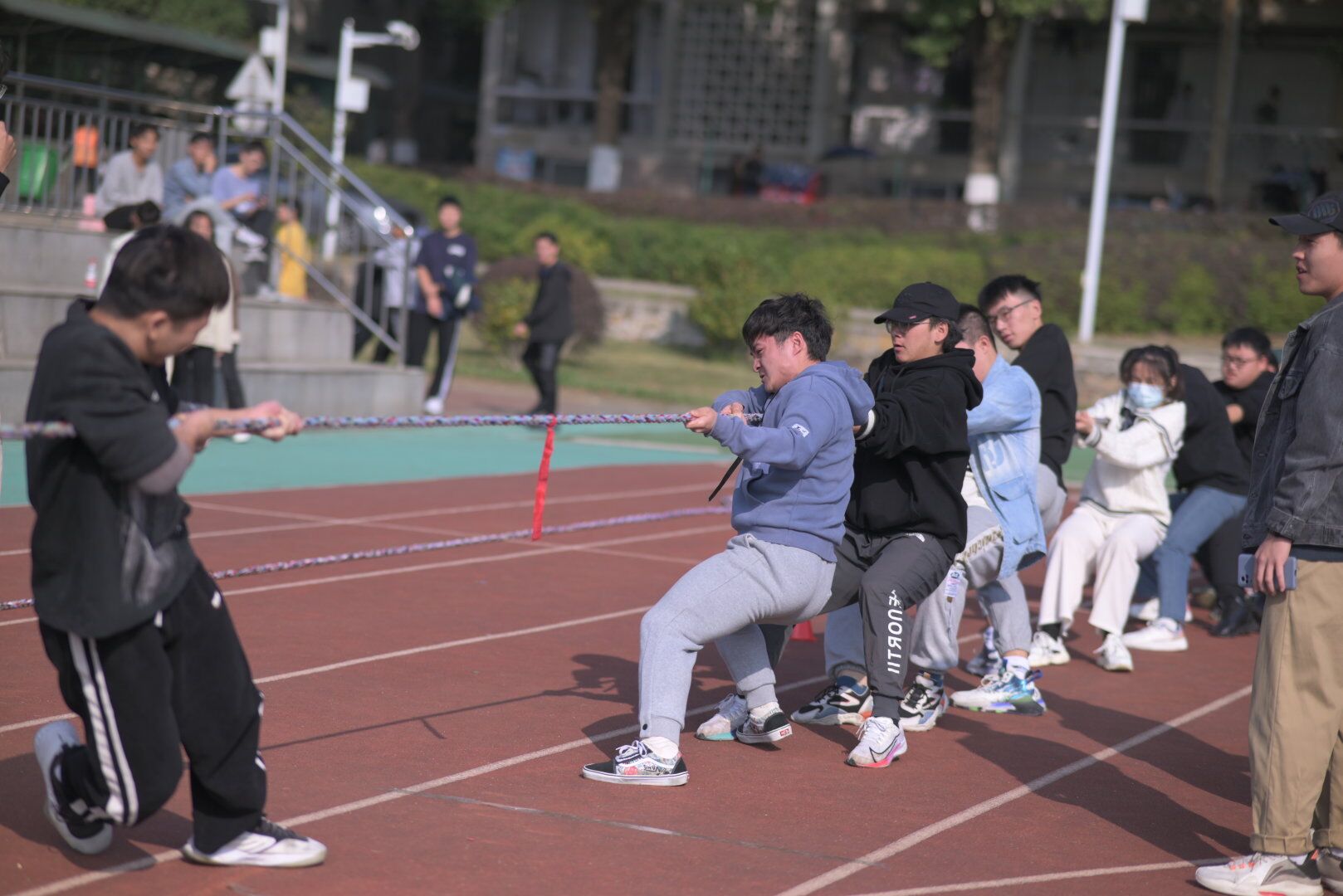 2022年11月20日上午9點,由計算機科學學院2021級體育部舉辦的拔河比賽如期在南區操場舉行。2021級各班參賽隊員參加了本次活動,21級輔導員袁磊、湯淵,21級各班班導師,兼職輔導員李月婷到現場為隊員們加油助威。