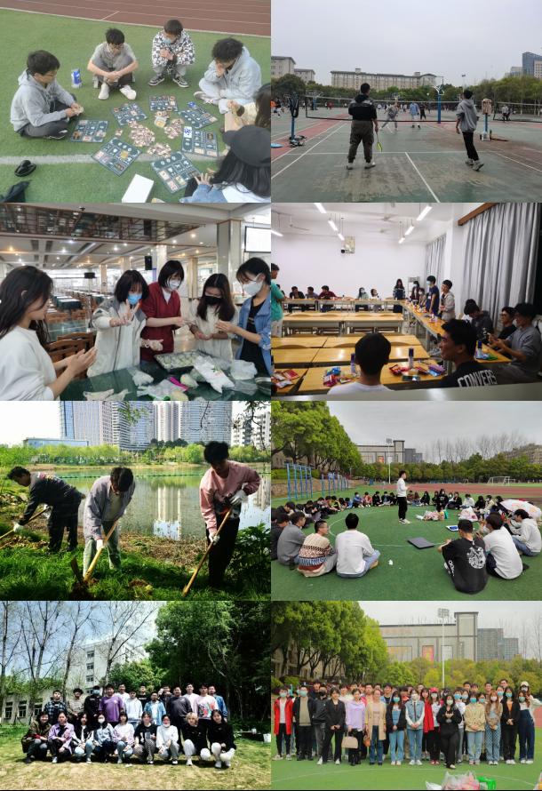 2021級(jí)組織了“棋牌益智”活動(dòng)和“遍尋校園春光”短片拍攝等;2020級(jí)組織了手工制作青團(tuán),體味傳統(tǒng)風(fēng)俗文化和師生同行,體味勞動(dòng)樂(lè)趣等;2019級(jí)組織了“以青春的名義”聯(lián)合草坪主題班會(huì);2018級(jí)組織了考研、求職經(jīng)驗(yàn)分享。