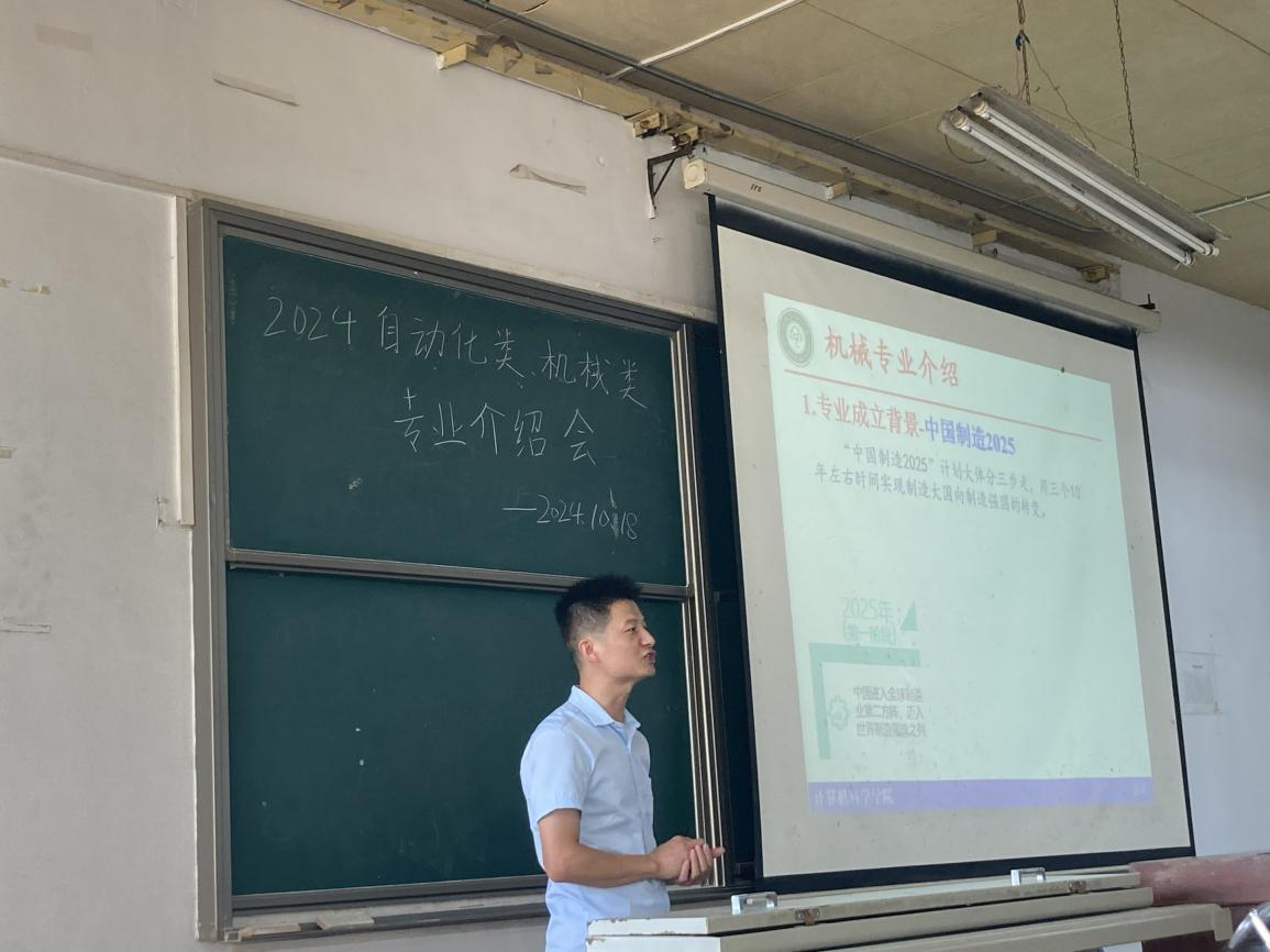 為進(jìn)一步做好新生入學(xué)教育,引領(lǐng)新生了解專業(yè)領(lǐng)域發(fā)展情況,盡快熟悉專業(yè)培養(yǎng)方案,盡早做好職業(yè)發(fā)展規(guī)劃。2024年10月24日,計(jì)算機(jī)科學(xué)學(xué)院分別在學(xué)術(shù)會(huì)堂和1號(hào)樓201開展新生專業(yè)介紹會(huì),各專業(yè)負(fù)責(zé)人老師進(jìn)行專業(yè)介紹,全體2024級(jí)學(xué)生參加。會(huì)議分別由2024級(jí)計(jì)算機(jī)類輔導(dǎo)員黃炎壘和自動(dòng)化類2406班班助高貽苗主持。