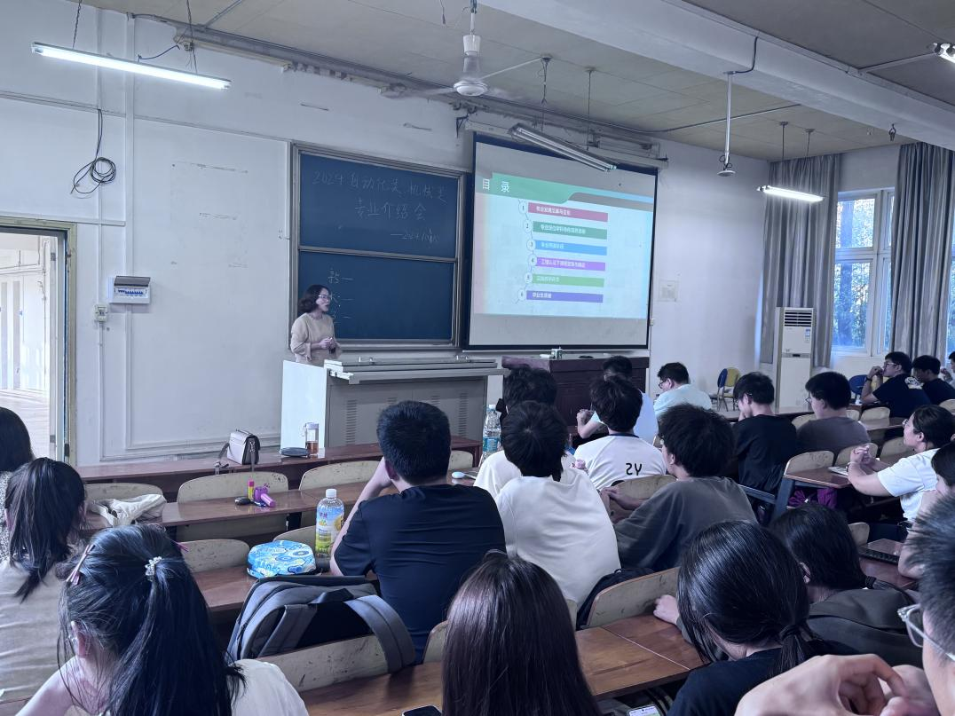 樊金榮老師引導(dǎo)同學(xué)們既要感受大學(xué)生活的美好,更要做好個(gè)人發(fā)展規(guī)劃,推進(jìn)知識(shí)向能力轉(zhuǎn)變。她從自動(dòng)化專業(yè)的課程體系架構(gòu)、學(xué)科特色和培養(yǎng)目標(biāo)三方面展開介紹,展示其交叉學(xué)科特色和多元課程內(nèi)容,為學(xué)生提供了實(shí)用的專業(yè)選擇建議。