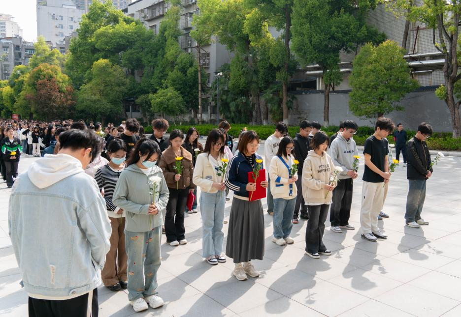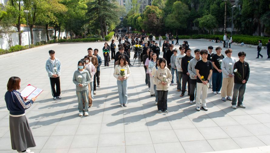 本次活動在莊嚴肅穆的氛圍中拉開序幕。同學們整齊列隊肅立于北伐戰(zhàn)爭紀念碑前,集體默哀一分鐘。默哀畢,他們懷著崇敬的心情依次向革命先烈敬獻鮮花。在巍峨的紀念碑下,同學們深切追思為民族解放事業(yè)英勇獻身的革命先輩,表達對他們的無限哀思和崇高敬意。