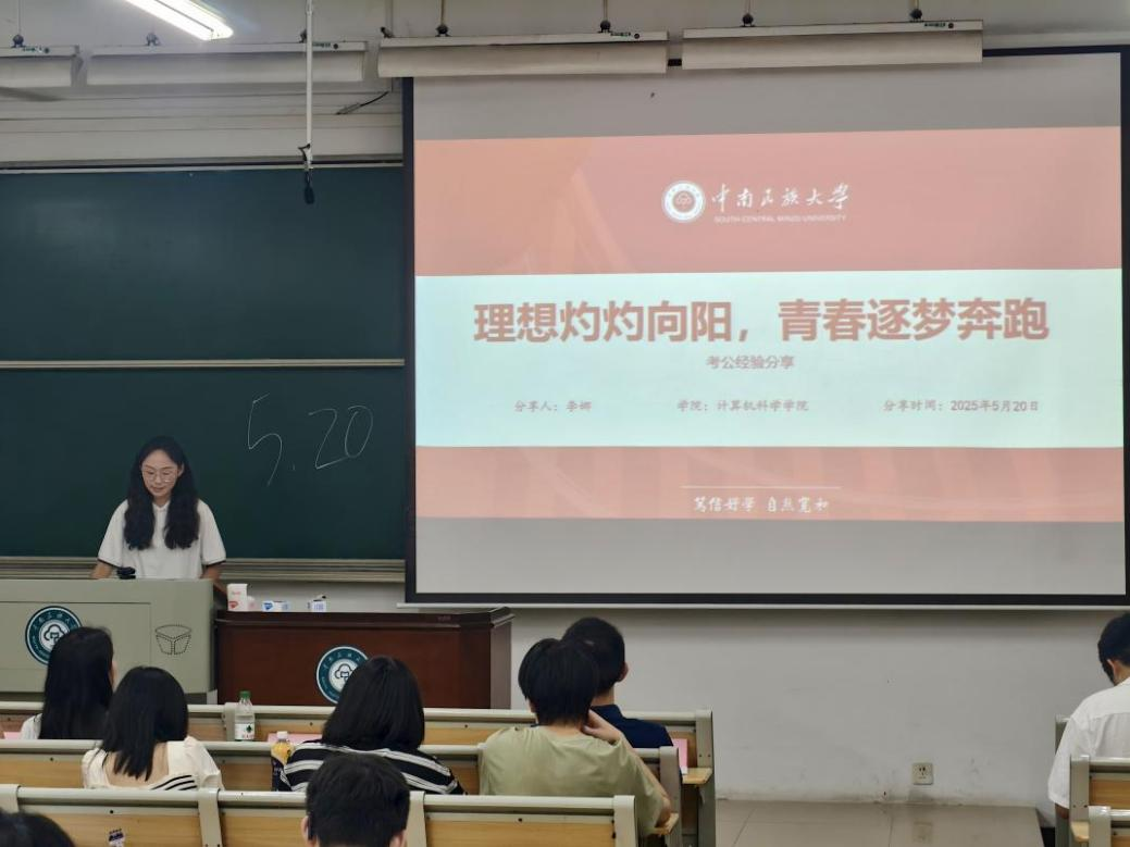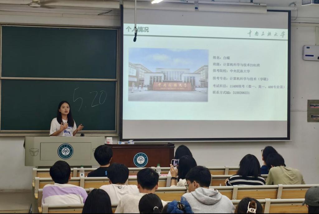 為引導(dǎo)同學(xué)們盡早明確學(xué)業(yè)目標(biāo),科學(xué)規(guī)劃職業(yè)發(fā)展,助力學(xué)生成長(zhǎng)成才,2025年5月20日,我院2023級(jí)計(jì)算機(jī)科學(xué)與技術(shù)專(zhuān)業(yè)在11棟208教室成功舉辦主題為“‘計(jì)’往開(kāi)來(lái),引航逐夢(mèng)”畢業(yè)生經(jīng)驗(yàn)交流會(huì)。此次活動(dòng)邀請(qǐng)2021級(jí)計(jì)算機(jī)科學(xué)與技術(shù)專(zhuān)業(yè)優(yōu)秀畢業(yè)生彭泰、白蝶、李娜,圍繞保研、考研、考公展開(kāi)深度分享與交流。學(xué)院計(jì)算機(jī)科學(xué)與技術(shù)系主任徐勝舟參加。