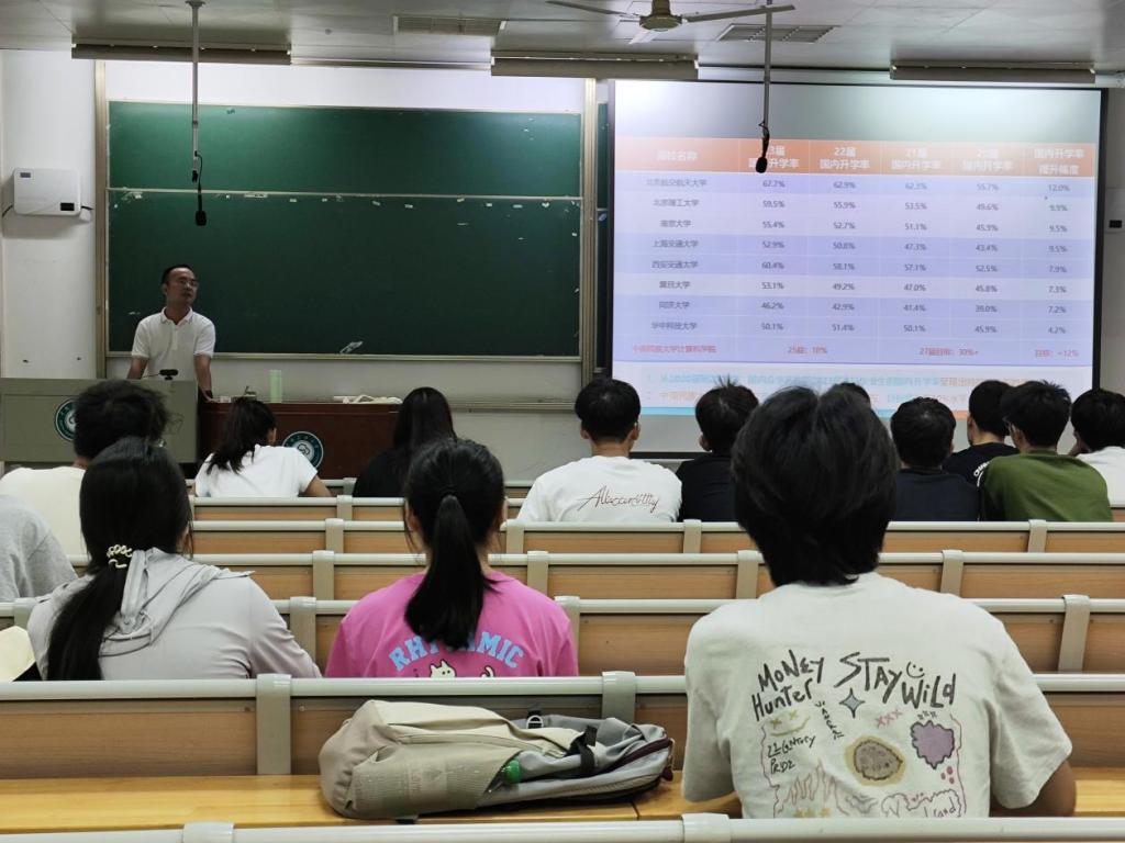 為幫助學(xué)生進(jìn)一步明確畢業(yè)規(guī)劃、經(jīng)過(guò)前期調(diào)查摸排,破解2023級(jí)機(jī)械、自動(dòng)化、軌道專(zhuān)業(yè)學(xué)生在考研流程認(rèn)知、院校專(zhuān)業(yè)選擇中的困惑,切實(shí)提升考研備考的科學(xué)性與成功率,計(jì)算機(jī)學(xué)院于9月18日晚上18:30于15-305教室精心策劃并成功舉辦了“27屆考研全程復(fù)習(xí)規(guī)劃及院校專(zhuān)業(yè)選擇”專(zhuān)題公益講座。本次考研講座由楊陳波老師主持,并特別邀請(qǐng)了湖北高升上岸教育校長(zhǎng)胡凱老師主講。胡凱老師以專(zhuān)業(yè)的數(shù)據(jù)洞察、系統(tǒng)的方法論指導(dǎo),為在場(chǎng)學(xué)子構(gòu)建了清晰的考研備考框架。