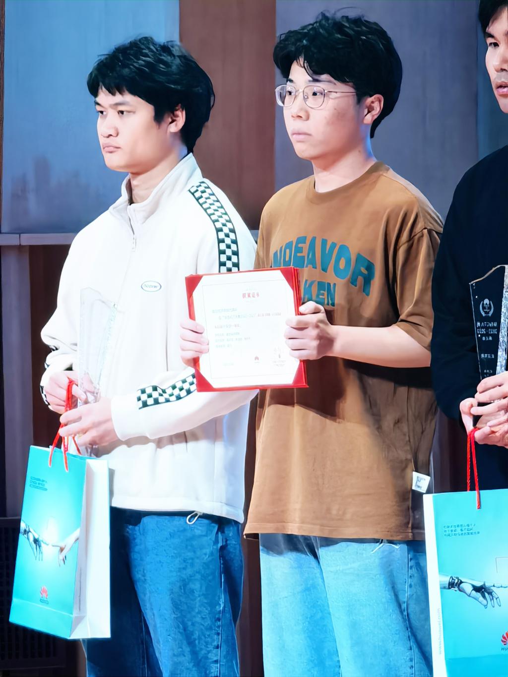 王洪杰在華為ICT比賽頒獎現場(左一)。 計算機科學學院供圖