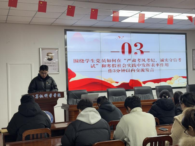 會議中,黨支部副書記施華斌強調(diào)了誠信考試的重要性,呼吁全體黨員在即將到來的考試中嚴格遵守考風考紀,做到誠實守信。隨后,支部學生黨員圍繞“守正創(chuàng)新謀發(fā)展,賡續(xù)文脈育新人”的主題,緊密結(jié)合個人自學成果與學業(yè)發(fā)展規(guī)劃,逐一上臺交流了各自的心得體會與深刻感想。他們紛紛表示,將以實際行動踐行黨員的初心和使命,為學校的改革發(fā)展貢獻自己的青春力量。