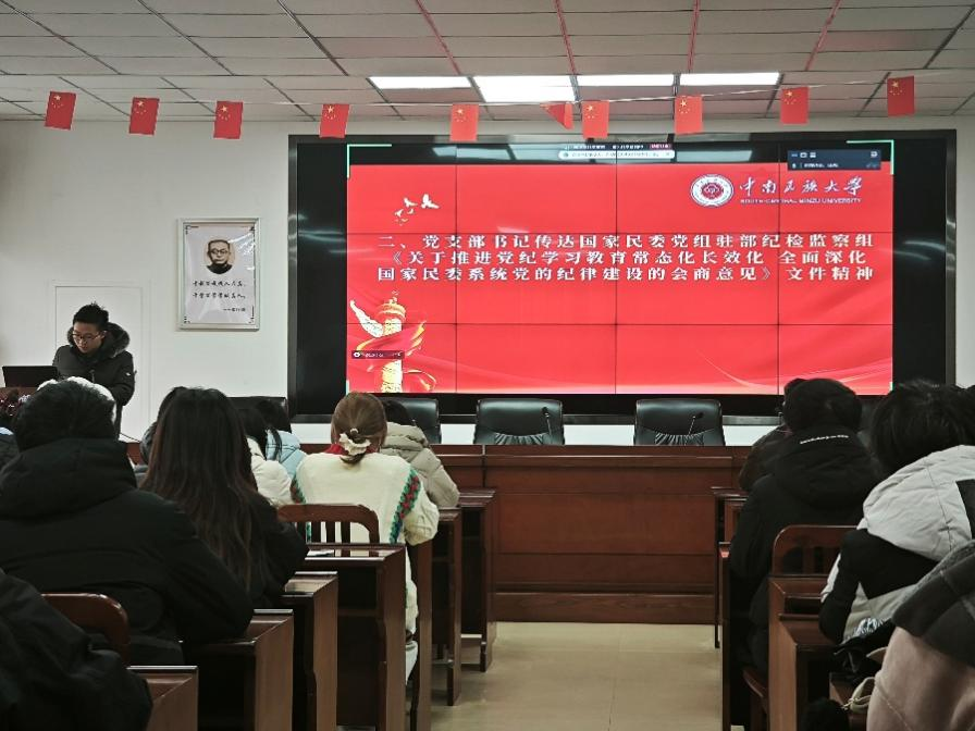 蘇志俊老師傳達(dá)了《關(guān)于推進(jìn)黨紀(jì)學(xué)習(xí)教育常態(tài)化長(zhǎng)效化全面深化國(guó)家民委系統(tǒng)黨的紀(jì)律建設(shè)的會(huì)商意見(jiàn)》文件的重要內(nèi)容和指示精神,要求同學(xué)們深入理解、嚴(yán)格遵守黨的紀(jì)律,將黨紀(jì)教育的主要成果主動(dòng)融入日常行為,不斷發(fā)揮黨員先鋒模范作用,在年級(jí)內(nèi)營(yíng)造帶頭遵守校紀(jì)校規(guī)的良好氛圍。同時(shí),蘇志俊老師分享了習(xí)近平總書(shū)記在京出席民營(yíng)企業(yè)座談會(huì)的重要講話精神,講話指出民營(yíng)經(jīng)濟(jì)發(fā)展前景廣闊、大有可為。作為新時(shí)代青年,希望同學(xué)們要立足專業(yè)背景,發(fā)揮專業(yè)優(yōu)勢(shì),刻苦鉆研學(xué)習(xí),練就過(guò)硬本領(lǐng),推動(dòng)科技創(chuàng)新,培育新質(zhì)生產(chǎn)力,將個(gè)人理想融入實(shí)現(xiàn)中國(guó)夢(mèng)的偉大征程中。