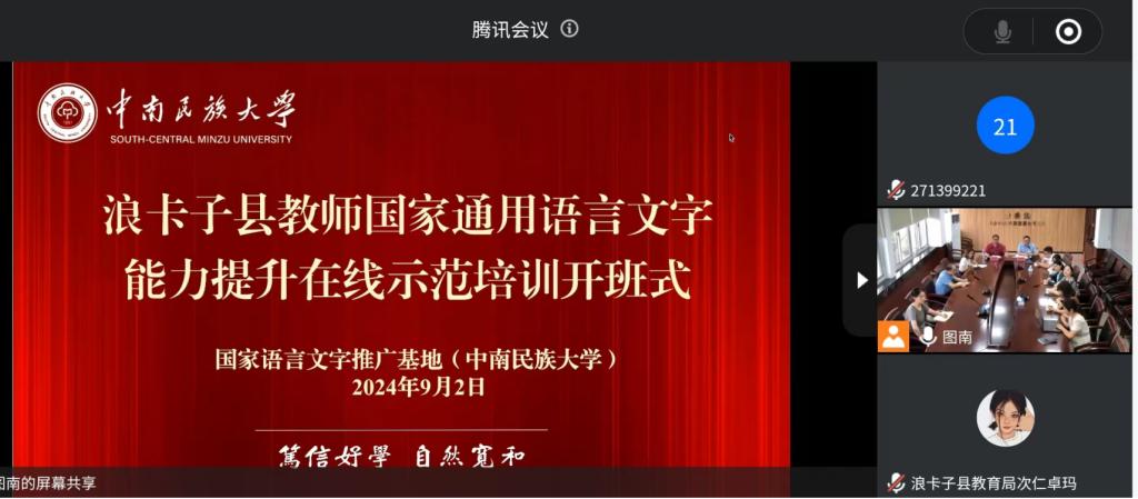 國家語言文字推廣基地(中南民族大學)對口西藏自治區浪卡子縣教師國家通用語言文字應用能力提升在線示范培訓班順利開