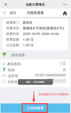 13.顯示“已繳費完成”,即為支付成功。