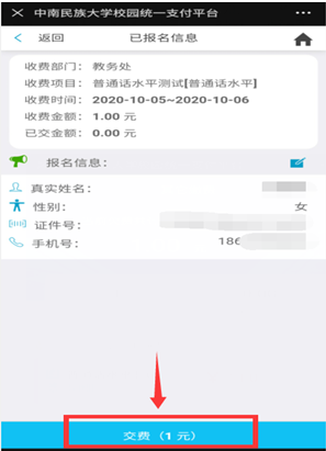 9.點擊下方“交費X元”按鈕 10.點擊右下角“繳”按鈕
