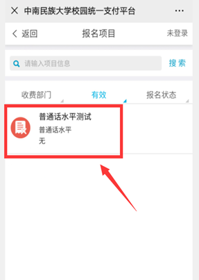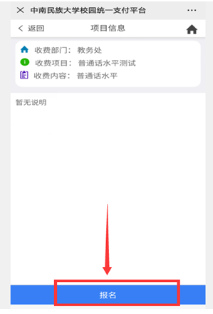 3.點擊“報名項目”,如圖: 4.點擊“普通話水平測試”項目