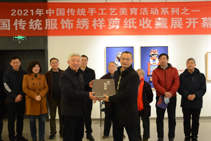 江蘇省工藝美術(shù)大師楊兆群、武漢市非遺中心主任王建軍向中南民族大學(xué)美術(shù)學(xué)院贈(zèng)書(shū)。
