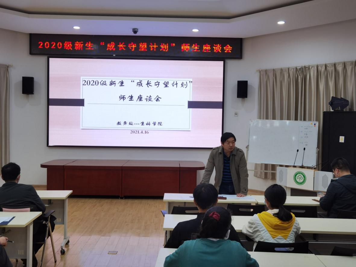 4月16日下午,教務處(監評中心)黨支部與生命科學學院2020級“成長守望計劃”師生座談會在四號樓多功能廳召開。教務處(監評中心)班子成員、老師及生命科學學院2020級有關同學參加了座談會。座談會由教務處(監評中心)黨支部書記余俊同志主持。