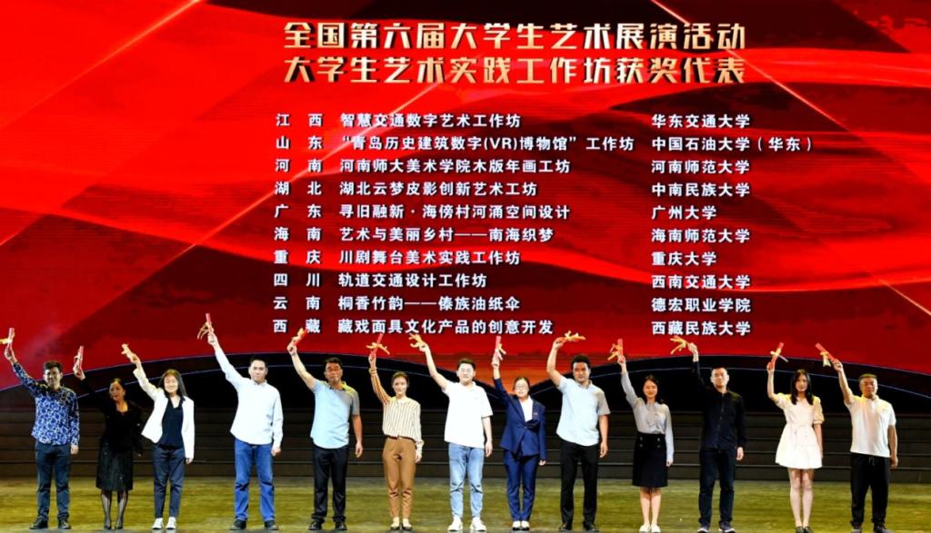 (美術(shù)學(xué)院 潘俊 王海濤)5月12日晚,以“奮斗·創(chuàng)新·奉獻(xiàn)”為主題的全國(guó)第六屆大學(xué)生藝術(shù)展演活動(dòng)在四川成都落下帷幕。美術(shù)學(xué)院三項(xiàng)作品獲得獎(jiǎng)項(xiàng)。