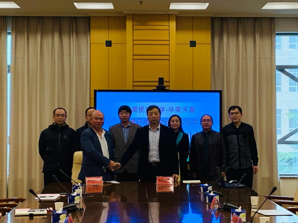 2022年11月25日上午,中南民族大學—武漢華榮天香生態(tài)農(nóng)業(yè)科技發(fā)展有限公司共建藥用植物園續(xù)簽戰(zhàn)略合作協(xié)議暨實習基地建設研討會在我校學術交流中心舉行。校黨委常委、副校長杜冬云,華榮天香有限公司董事長盧祖林,教務處、黨委學生學工部、科學研究發(fā)展院、藥學院、生命科學學院、生物醫(yī)學工程學院、資源與環(huán)境學院、公共管理學院負責人參加會議。會議由教務處處長黃迎新主持。