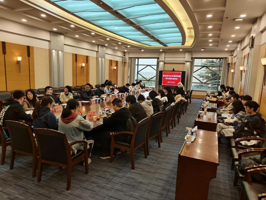 3月16日中午,教務處在學術交流中心召開學生團隊座談會。教務處全體處級干部、各科室負責人,教務處學生團隊全體人員參加會議。會議由教務處處長黃迎新主持。