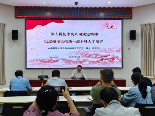 胡軍浩緊扣“為何學、怎么學、怎么做”三大維度展開系統闡述。他指出,中央八項規定是新時代黨的作風建設的里程碑,集中彰顯了馬克思主義政黨的本質屬性,更是應對高等教育數字化轉型、復合型人才培養等新挑戰的戰略舉措。作為本科人才培養“全鏈條”的中樞,本科生院必須錘煉“求真務實、艱苦奮斗、密切聯系師生”的過硬作風,以優良黨風政風引領教風學風,為一流本科人才培養營造風清氣正的良好生態。