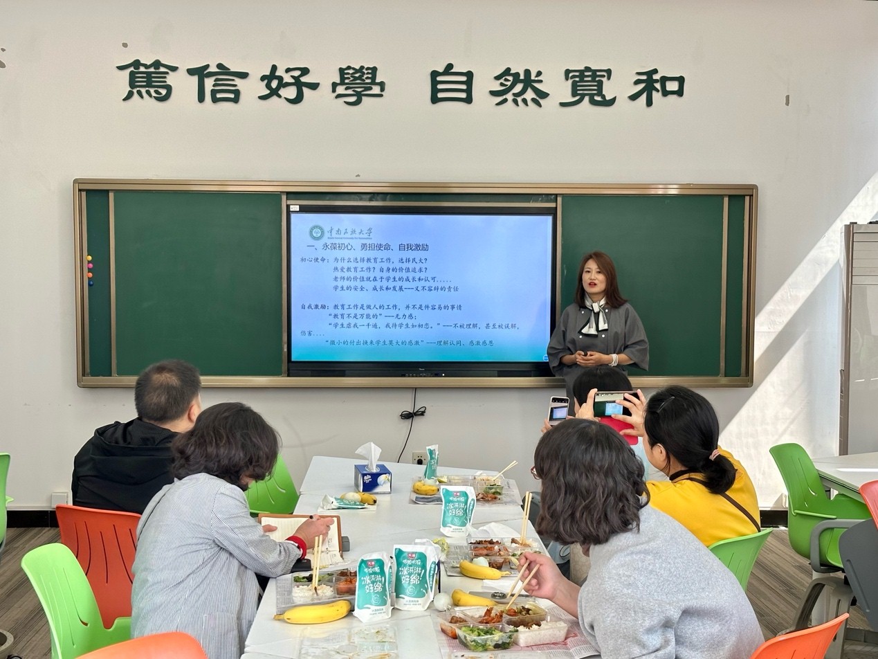 劉老師首先指出:教育工作者必須堅守“以學生為中心”理念,永葆初心、勇擔使命,肩負起立德樹人的艱巨任務。之后,從“圍繞學生、關照學生、服務學生”“一個臺賬、兩支隊伍、三全育人”“強化學習、持續賦能、相互成就”等三部分,結合自己12年輔導員工作經歷,詳細分析了學生在學業、心理、規劃發展等各方面體現出的特征、需求與面臨的困惑,闡述了如何從信任建立、溝通交流、危機干預、家校聯動等多方面全員、全過程、全方位做好引導、服務、管理等工作,同時強調教師要不斷加強學習與實踐,持續自我激勵與賦能,用優秀的品格、開拓的眼界、精湛的專業去感染、培養、成就每一位學生。講座后,教師們就班導師工作開展、學生培養等問題與劉老師展開積極交流與探討。