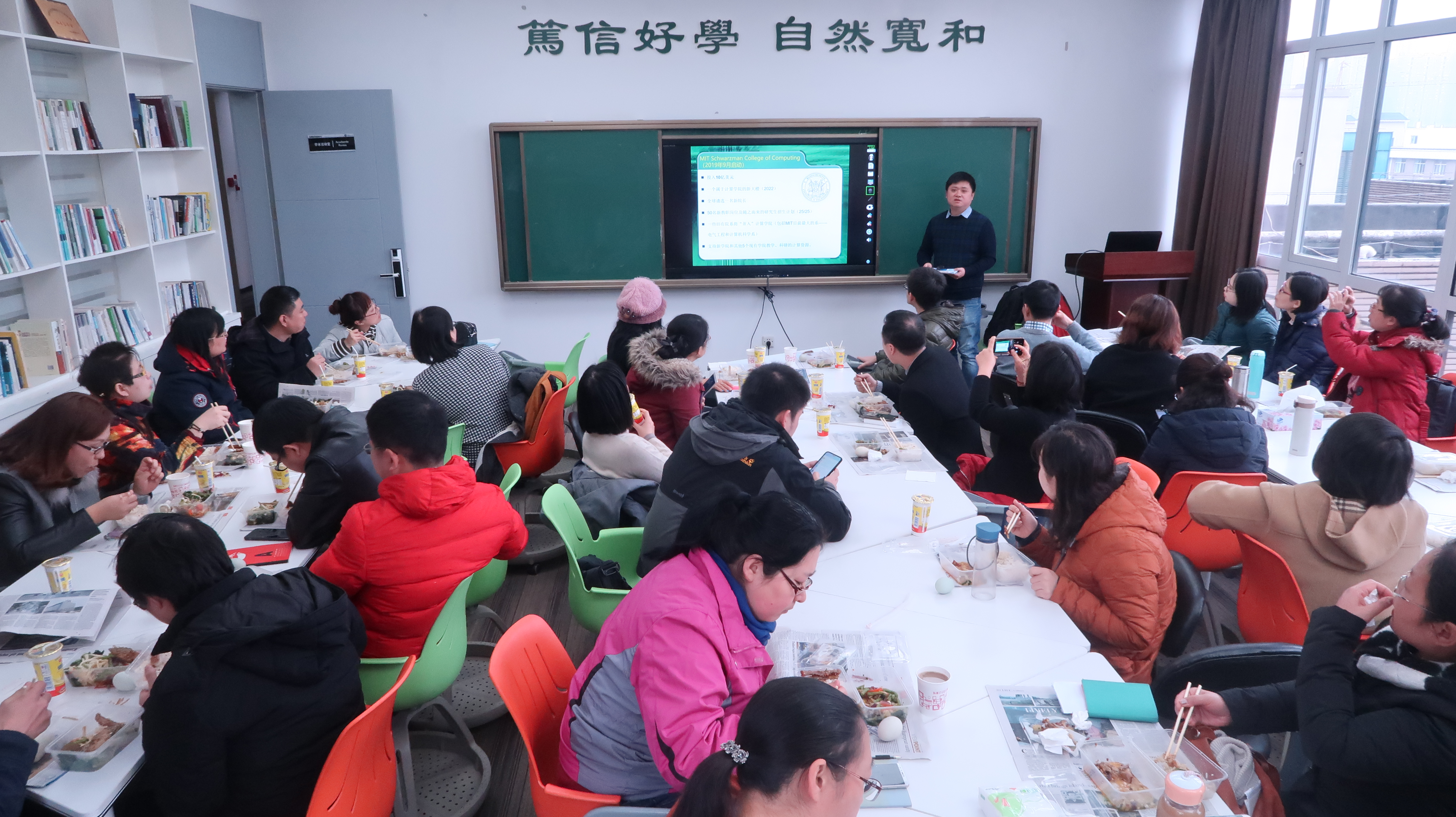 12月6日,第63期教學學術午餐會在教師教學發展中心學術活動室舉辦。本期午餐會主持人為計算機科學學院的朱宗曉副教授以及生物醫學工程學院的陳軍波副教授,主題是“大學如何培養人工智能人才?”。來自全校50余名教師參與了此次活動。 首先,朱老師向在座的各位老師介紹了人工智能專業發展的時代背景與我國人工智能發展的階段規劃。在詳述了國內外人工智能學科的發展情況和高等院校人工智能教育蓬勃發展的現狀后,他強調我校亦應緊跟時代發展潮流,開展人工智能人才教育。 隨后,朱老師從“定位—取舍—做規劃”、“找人—找錢—找資源”、“目標—行動—常溝通”三個方面逐一介紹了我校計算機科學學院“智能車創新團隊”從籌劃到建設到運行最后取得豐厚成果的過程。朱老師認為,在團隊發展初期應有所為有所不為,找準自身定位規劃組織愿景;針對有限目標精準尋求人財物支持,做到有的放矢;通過頭腦風暴法集思廣益,堅定踐行目標,加強組織內部各組溝通。 最后,朱老師分析了社團教師、學生組成優化的過程,他說教師是培養人工智能人才的關鍵,學生的素質和決心是社團發展的根本,“智能車創新團隊”堅持因人施教、人盡其才、末位淘汰的策略,取得了較好的成果。