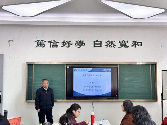 周教授從責任心、把握教材能力和教學設計能力三個維度,系統分享了其在教學領域多年的經驗和見解。他結合課堂教學實際,詳細闡述了如何通過強化教師的責任心來改善課堂管理,以及如何通過提升教師的把握教材能力和教學設計能力來提高教學質量。周教授強調,教師應將“以學生為中心”的教學理念轉化為具體的教學實踐,以實現教學內容和方法的創新。他還鼓勵教師在教學設計中融入課程思政元素,做到潤物無聲地引導學生樹立正確的價值觀和人生觀。