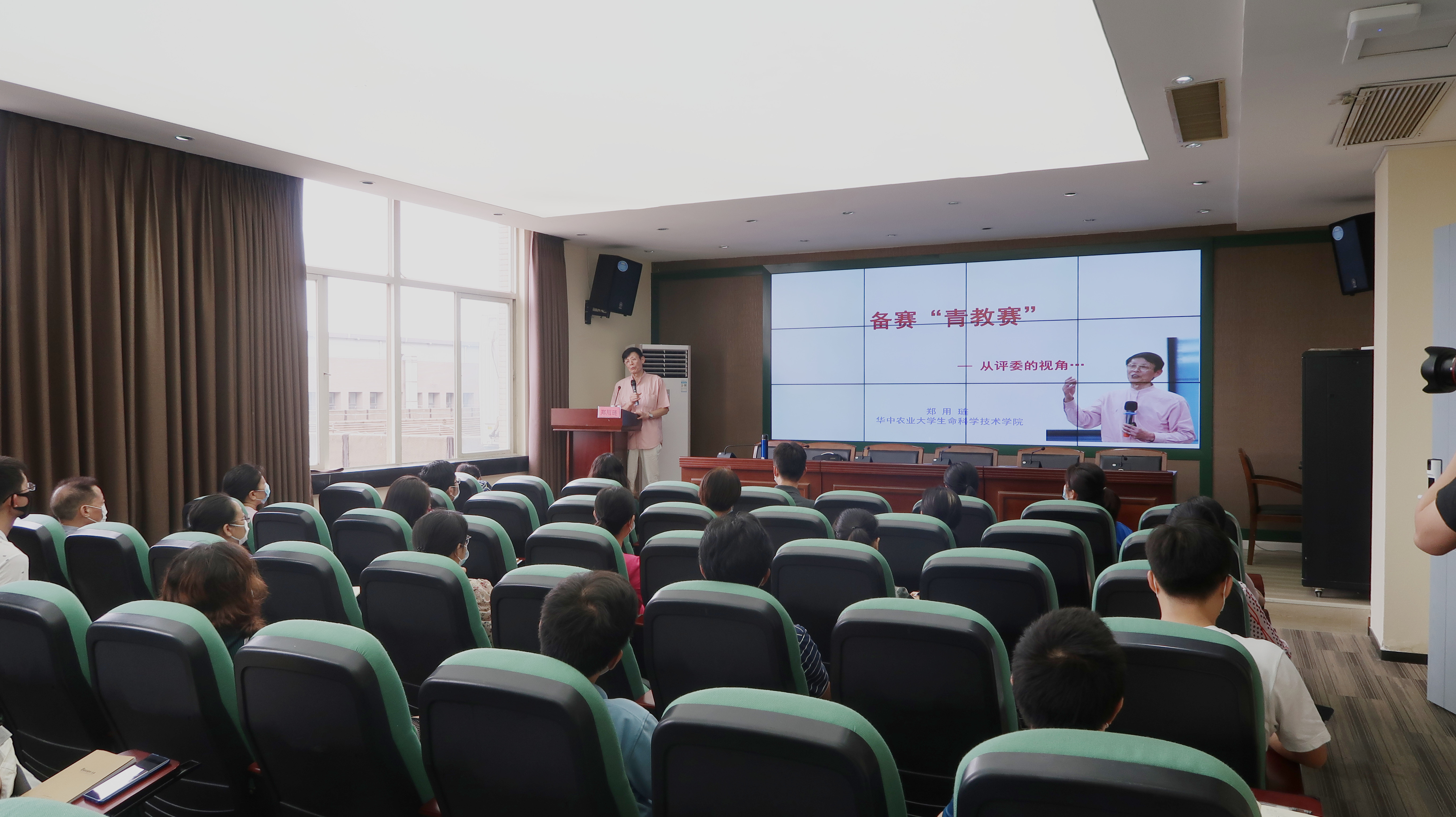 7月18日下午,首屆國家教學名師、湖北省青教賽理科組組長、全國青教賽自然科學基礎學科組評委、華中農業大學鄭用璉教授受邀蒞臨教師教學發展中心作了題為“從評委視角備賽青教賽”的講座,我校青教賽參賽選手,各學院青年教師,校工會、教師教學發展中心等部門負責人參加了本次活動。講座由中心副主任侯睿主持。 鄭用璉教授首先詳細介紹了湖北省青教賽的內容與形式,解讀了競賽的具體要求,然后結合指導經歷和實際案例,從評委的視角分享了教學設計、課堂教學和現場答辯環節的備賽經驗。他強調,備戰青教賽要以教好一學科為目標,站在學科發展的角度,跳出課本的規定層次,圍繞知識點的內涵外延,進行“提出問題、分析問題、解決問題”的三段式教學設計。 在交流環節,與會教師結合自身教學和備賽的實際情況,與鄭用璉教授展開了積極的交流與互動。最后,侯睿對鄭用璉教授為我校青年教師教學能力提升工作的支持表示感謝,同時也勉勵參賽選手及青年教師以青教賽為契機,全面提升教學技能,力爭成為教學模范。