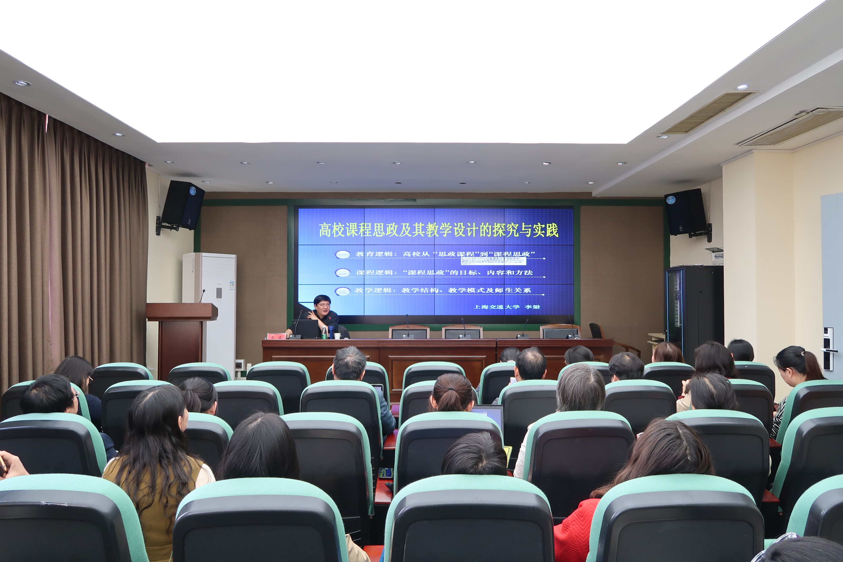 11月22日,上海交通大學李梁教授受邀至中心作了題為“高校課程思政及其教學設計的探究與實踐”的講座,來自省內10余所高校的50余名教師參加了此次活動。講座由中心副主任侯睿教授主持。 李教授從大學生思想政治教育和“課程思政”建設的背景出發,詳細介紹了上海大學“大國方略”等特色課程的建設歷程、課程目標、教學團隊及教學方式等,深入分析了“思政課程”和“課程思政”的內涵與聯系。李教授強調,思想政治教育要遵循教育教學規律和大學生成長規律,作為對大學生影響最深的專業課,更應該注重引導學生樹立正確的世界觀、價值觀及人生觀。 在交流環節中,李教授就如何將思想政治教育與專業課程有機融合做了詳盡解答。最后,侯主任為本次講座作了總結,講座在熱烈的掌聲中圓滿結束。