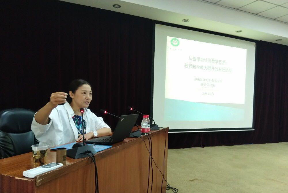 2018年8月29日,“國家民委專業課程模塊化教學團隊”核心成員、中南民族大學教育學院院長、教師教學發展中心常務副主任康翠萍教授應邀到三峽大學,為宜昌地區新入職教師進行以“基于創新創業教育理念的高校本科專業課程設計”和“從教學設計到教學反思:教師教學能力提升的有效途徑”為專題的培訓。該地區2018年新入職的200多位教師參加了培訓。 培訓過程中,康翠萍教授以大學改革為切入點,從教學設計、教學實施和教學反思三個方面闡述了教學效能提升的途徑與方法。康教授認為教師教學效能提升的關鍵在于教師對角色轉變的認識,新時期的教師需要重新定位、轉變角色、樹立科學的教學觀、學生觀、課程觀、知識觀、方法觀等。康教授還結合自身所承擔的本科專業課程模塊化教學改革項目,重點介紹了基于專業課程模塊化的教學設計及其實施經驗。整場培訓內容豐富,參會教師紛紛表示受益匪淺。