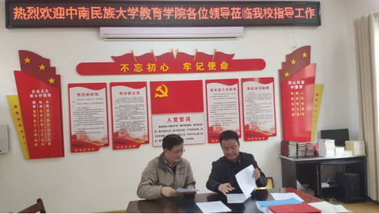 交流座談會上,雙方充分地了解彼此的現(xiàn)狀和訴求的基礎上,就共建教育實踐基地的相關事宜達成了共識,并簽訂了本科和教育碩士實踐基地協(xié)議。中南民族大學教育學院由羅建河副院長分別與毛陳鎮(zhèn)初級中學高興勝校長、毛陳鎮(zhèn)第一小學梁維學校長簽署“共建本科生教育實踐基地協(xié)議”;洪雷副院長分別與毛陳鎮(zhèn)初級中學高興勝校長、毛陳鎮(zhèn)第一小學梁維學校長簽署“共建專業(yè)學位研究生實踐基地協(xié)議”。