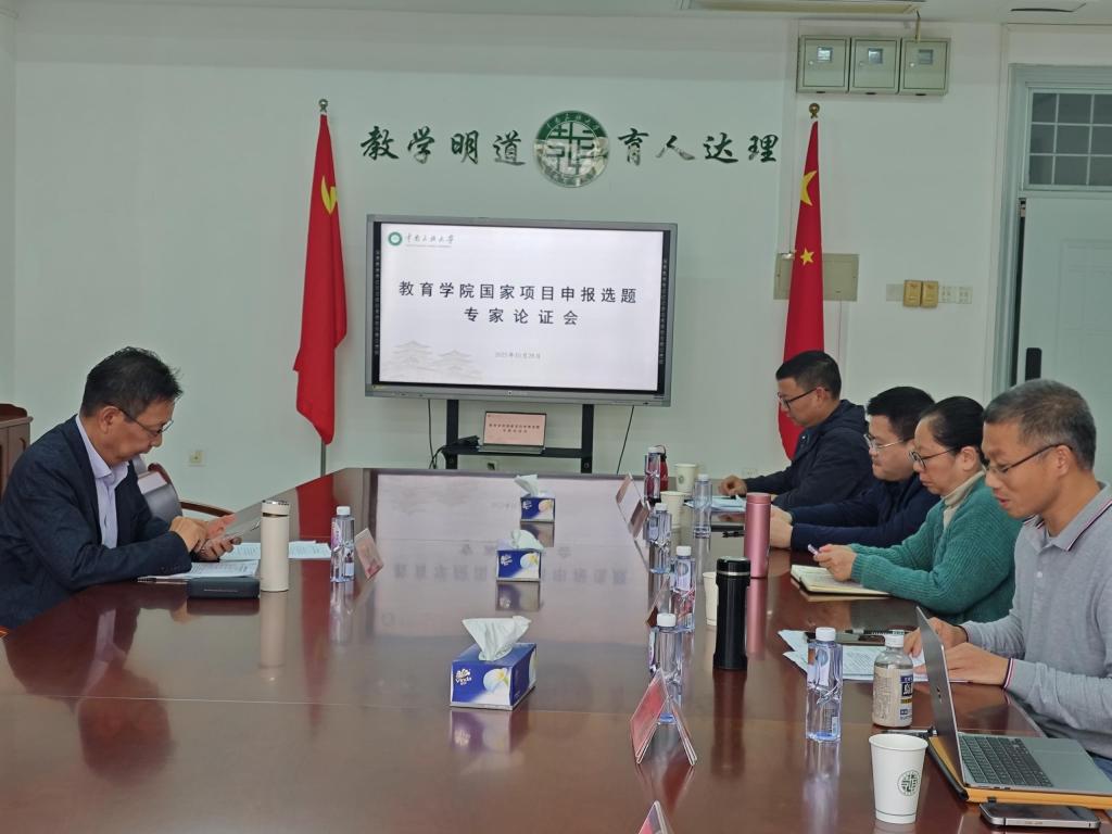2025年10月28日,教育學院在15棟727會議室組織召開國家項目申報選題專家論證會,特邀長江學者特聘教授、浙江大學求是學者特聘教授張應強擔任指導專家。學院領導林晉書記、洪雷副院長,以及胡炳仙教授、魏立才副教授、張征副教授、畢正宇副教授、李玥忞博士等參加了會議。