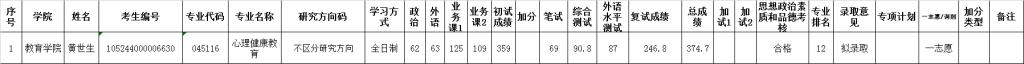 根據學校2024年碩士研究生招生擬錄取指標調整安排,教育學院心理健康教育專業擬增加1個擬錄取指標,按照候補生源總成績排名依次遞補原則,擬錄取黃世生。具體名單詳見附件。