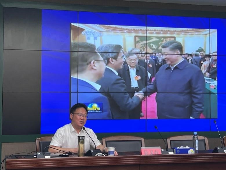 報告伊始,吳又存副校長深情回憶了自己作為思政課教師代表獲邀參加2019年3月18日習近平總書記主持召開的全國學校思想政治理論課教師座談會并發言的經歷與感受,帶領全體教師深入學習了習近平總書記關于推進新時代思想政治理論課改革的重要講話精神。